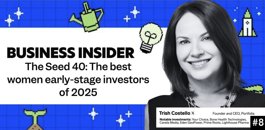 Portfolia Founder & CEO Trish Costello was recognized by Business Insider as one of 2025’s top women early-stage investors for her consistent leadership and bold investments across women’s health, sustainability, and diverse founders — even as others pulled back. "The smartest trend was to stay consistent and disciplined and keep putting our money to work,” Trish told BI. [Read the full feature →]